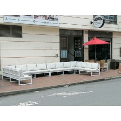 Sala pérgola en Aluminio Terminado Pintura poliéster al horno, cubierta en lonas templada importadas americana, nacional o española, cojinería 100%impermeable