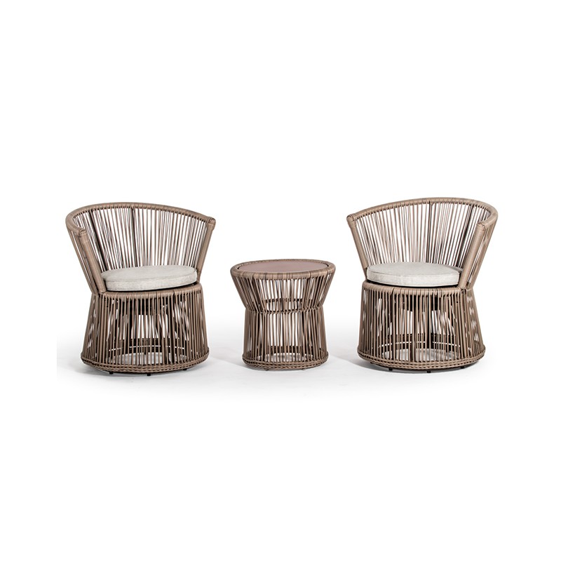 Estructura Liviana y Resistente en Aluminio Con Fibras de Ratan sintetico y Cojines en Tela Impermeable.
